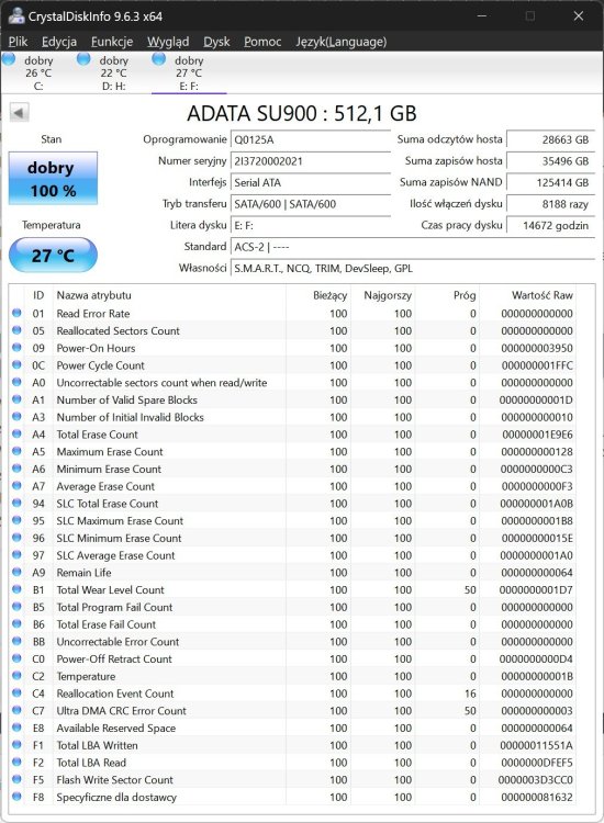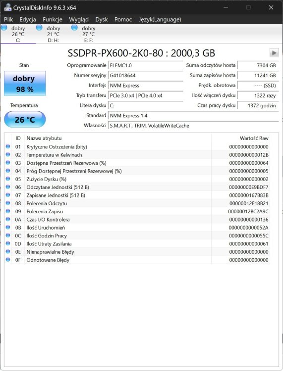 Witam, Przesyłam i Proszę o sprawdzenie logów z FRST. Także screen okna programu "CrystalDiskInfo". Dużo śmieci, nie chodzi tak, jak na początku. Często się zawiesza, uruchamia się sama strona internetowa co jakiś czas, zamyka czasami okna/foldery, Ma również ikonki z czerwonymi x-ami, Microsoft Teams. Wyskakujące różne okienka aplikacji, które są denerwujące. Nie wiem, czy źle ustawienia Avasta, czy ochrony, zapory systemu. Chcę, by sytem chodził bez zastrzeżeń i sprawnie. Pozdrawiam Addition.txt FRST.txt Shortcut.txt
