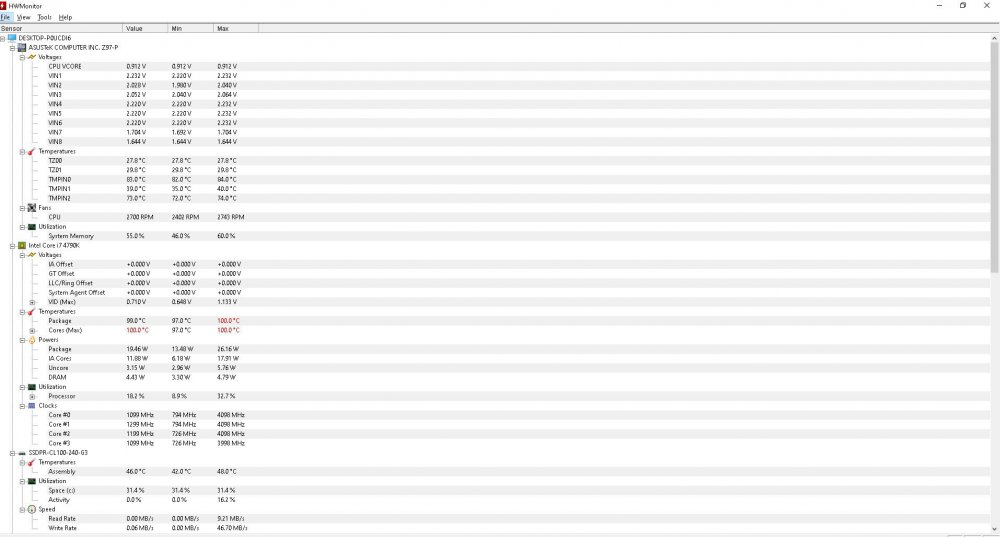 Niestety ostatnie dni były intensywne w pracy, także testu temperatury nie udało mi się wykonać. Specyfikacja: Asus Z97-P Intel Core i7-4790K 4 rdzenie, 4 wątki 4Ghz (nie jestem pewien czy nie jest podkręcony do 4,4. W BIOSie jest opisany jako 4Ghz) 12 gb RAM (miałem 4x4GB, ale podmieniłem na 2x4GB + 2x2GB, bo te kości są w parach kompatybilne) GeForce GTX 970 4GB HDD 500GB SSD 240GB SSD 120GB Załączam fixlog, czy coś się poprawiło będę mógł sprawdzić dopiero wieczorem. Fixlog.txt