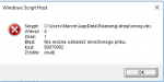 1. Witam. Od jakiegoś czasu przy starcie systemu pojawia się komunikat o błędzie programu Windows Script Host. Poniżej załączam screen'y z komunikatem o błędzie oraz pliki z logami. EDIT: Da się to w ogóle naprawić? Addition.txt FRST.txt Shortcut.txt