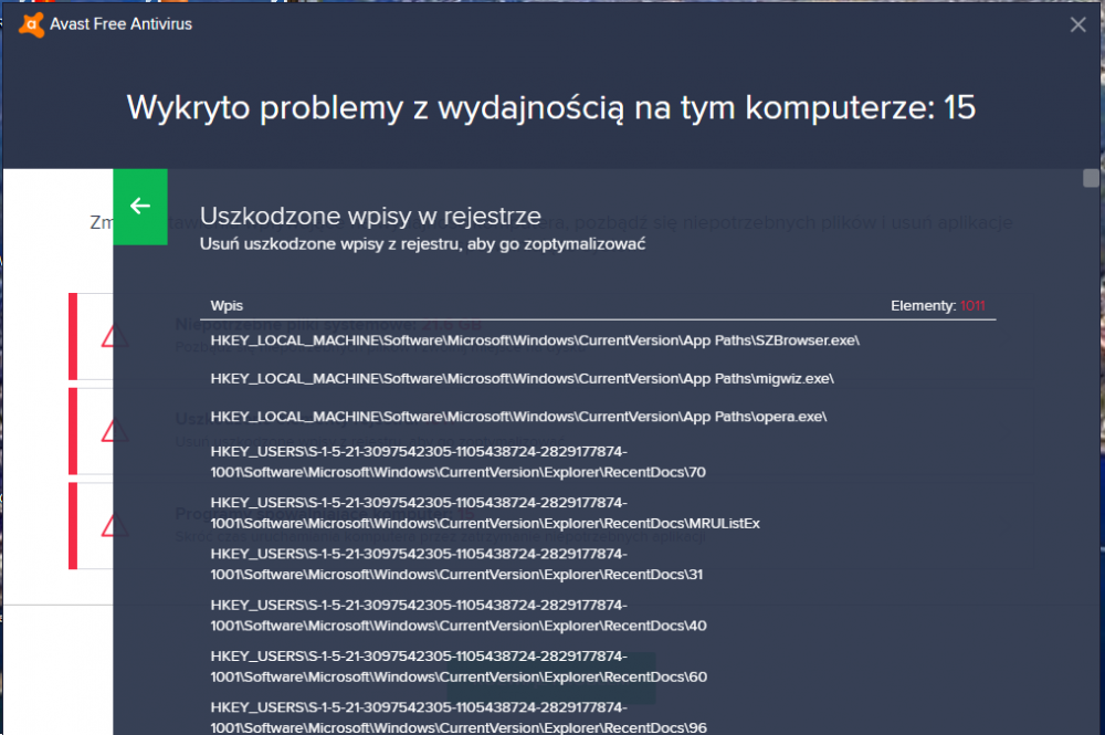 Wszystko śmiga. To jeszcze mam ostatni problem. A mianowicie są to uszkodzone wpisy w rejestrze (a jest ich ponad 1011 o.O). Czy muszę je sam znajdywać i usuwać? Czy wystarczy do tego miesięczna wersja próbna Avasta? Z góry dziękuję za odpowiedź -