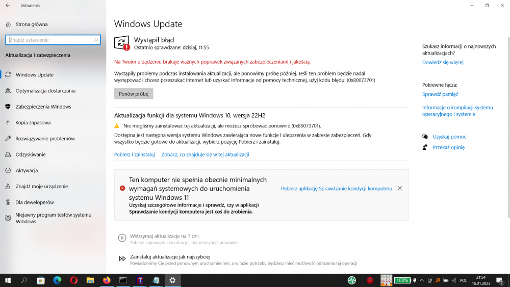 Witajcie, w dalszym ciągu występują u mnie problemy z aktualizacjami systemowymi Windows 10. Pojawia się błąd 0x80073701. sfc /scannow nie pokazał żadnych błędów z integralnością systemu. W załącznikach logi FRST i Addition. Addition.txt FRST.txt
