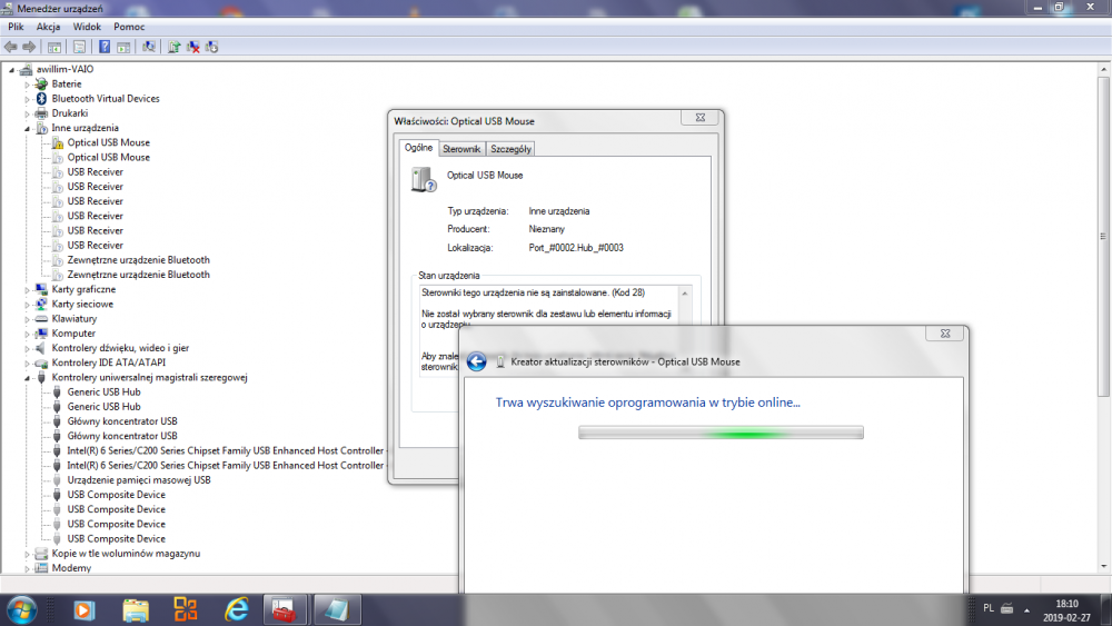 Probowalam wrócić na starą mysz na kabelku i zdziwienie, bo tez nie działa.Jak próbuję aktualizować sterownik to bez skutku