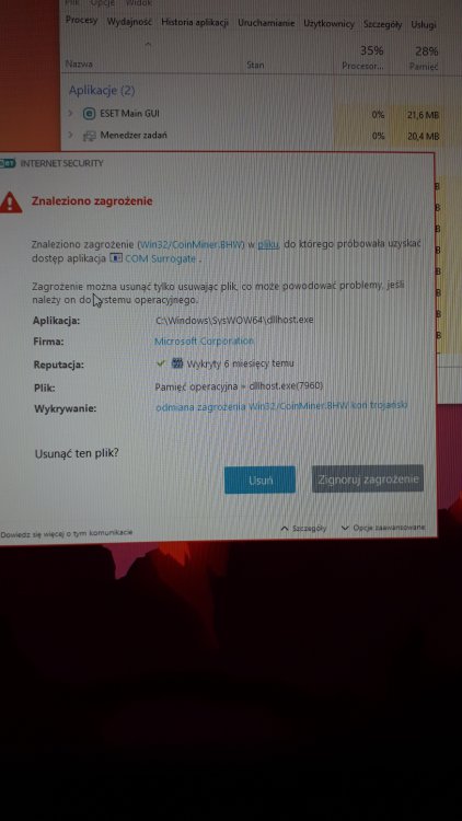 Virus jest w COM surrogate (dllhost) tak pokazuje mój antyvirus. Po chwili pokazuje się nowy proces notatnik który zajmuje 30% procesora. Proszę o pomoc. Wysyłam też zdjęcia wyników antyvirusa