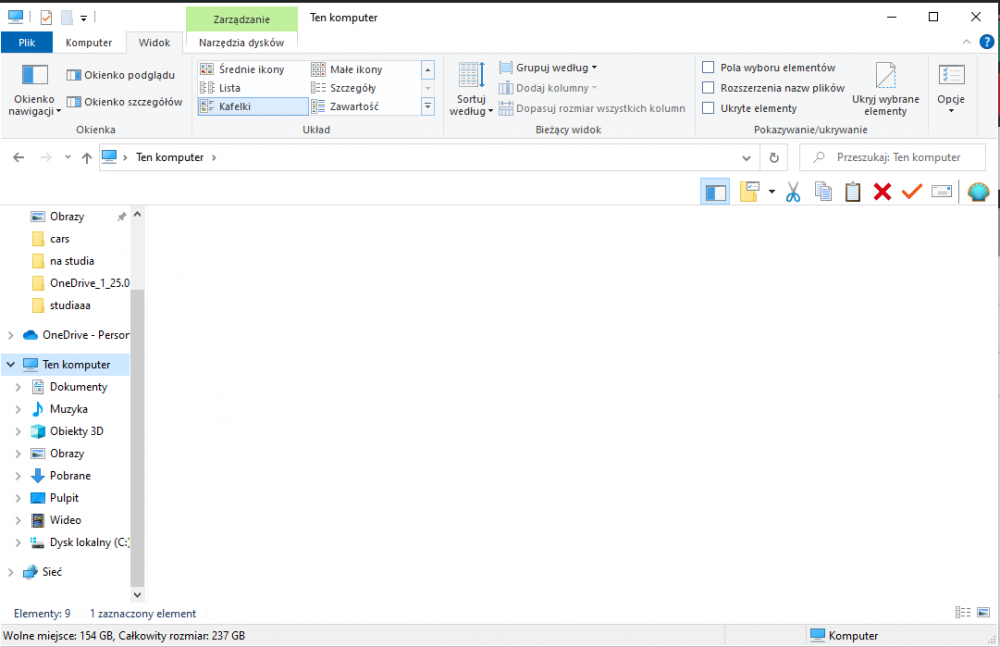 Zauważyłem, u siebie dziwny objaw. Po wejściu w obojętnie jaki folder nie pokazuje się jego żadna zawartość. Czy to na pulpicie czy na dysku systemowym. Po przeniesieniu plików do nowo powstałego folderu, również są one niewidoczne. Jednak po wejściu w właściwości ww. folderu pokazuje się, że zawiera jakąś zawartość. Myślałem, że coś w ustawieniach może się przestawiło, ale to jednak chyba nie to.