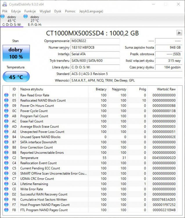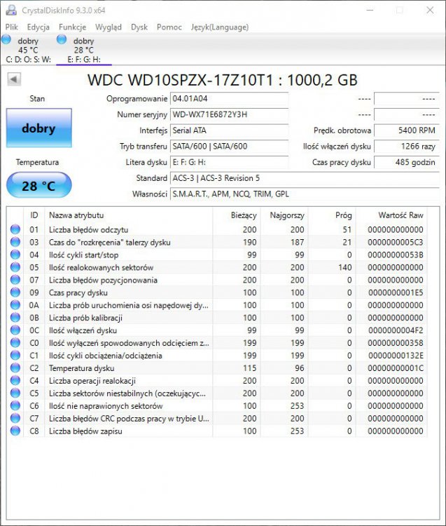 1. Dziękuję Ci bardzo za zaangażowanie i szczegółową pomoc w mojej sprawie. Odpuszczam drążenie tematu, bo nie jest wart Twojego i mojego czasu. Dysk WDC pojawił się z powodu padnięcia dysku SSD trochę znanej firmy. Straciłem prawie terabyte różnych rzeczy, bo kiedyś wymyśliłem, że SSD to jest to. Dlatego wracam do poczciwych talerzy. Firma od SSD praktycznie odmówiła pomocy, ponieważ nie przedstawiłem dokumentu zakupu. Liczyłem na to, że mają sprzęt, na którym można odczytać zawartość kości pamięci. Odzyskiwanie danych wykonane przez rodzimą firmę odzyskującą dane, jawi mi się jako coś bardzo kosztownego i nie próbowałem tej ścieżki. Do przydługich czasów uruchamiania windy postaram się przyzwyczaić. Intryguje mnie fakt znacznej różnicy czasu w zależności od kolejności uruchamianych systemów. Trochę liczyłem na to, że ktoś już miał taki przypadek. Jeszcze raz dziękuję Ci za Twój czas. Pozdrawiam.