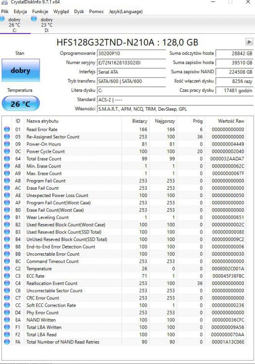 3. Rozumiem że w takim razie logi FRST są czyste? Załączam w takim razie screena z crystaldiskinfo