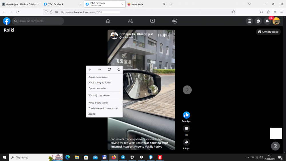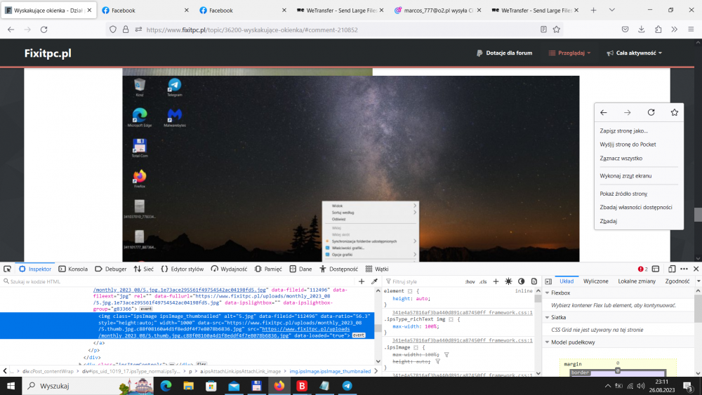 W załączeniu screeny, kiedy oglądałem rolkę i wyskakiwały na sekundkę lub dłużej takie okienka "prawokliku". Z myszką lub bez. A poniżej link do pobrania 21 sekundowego zapisu walki z okienkiem (jak moje 5.jpg) córki i zięcia: https://wetransfer.com/downloads/af73a78dbae0cbe459dfaaf53deba5c420230826203853/d2fc45877f5457d60bee3754e04e6da420230826204018/b21415?trk=TRN_TDL_01&utm_campaign=TRN_TDL_01&utm_medium=email&utm_source=sendgrid A przy okazji, jeśli można prosić o pomoc w usunięciu, przy starcie laptopa, konta do logowania Users. -