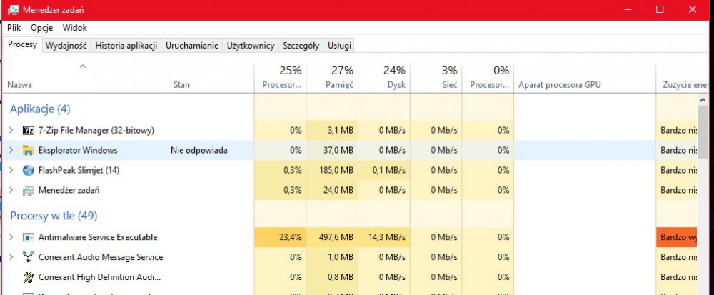 Dzień dobry. Proszę o pomoc w kwestii niekomfortowego działania Windows 10. Po starcie system jest ociężały, aplikacje uruchamiają się z potwornym opóźnieniem. Nie działa wyszukiwanie plików. Ponowne ręczne uruchomienie eksploratora Windows poprzez menadżer zadań poprawia szybkość działania systemu. System zaktualizował się do wersji 21H1 i problem nadal występuje tak jak na wersji 20H2. Co może powodować takim stan? Addition.txt FRST.txt Shortcut.txt