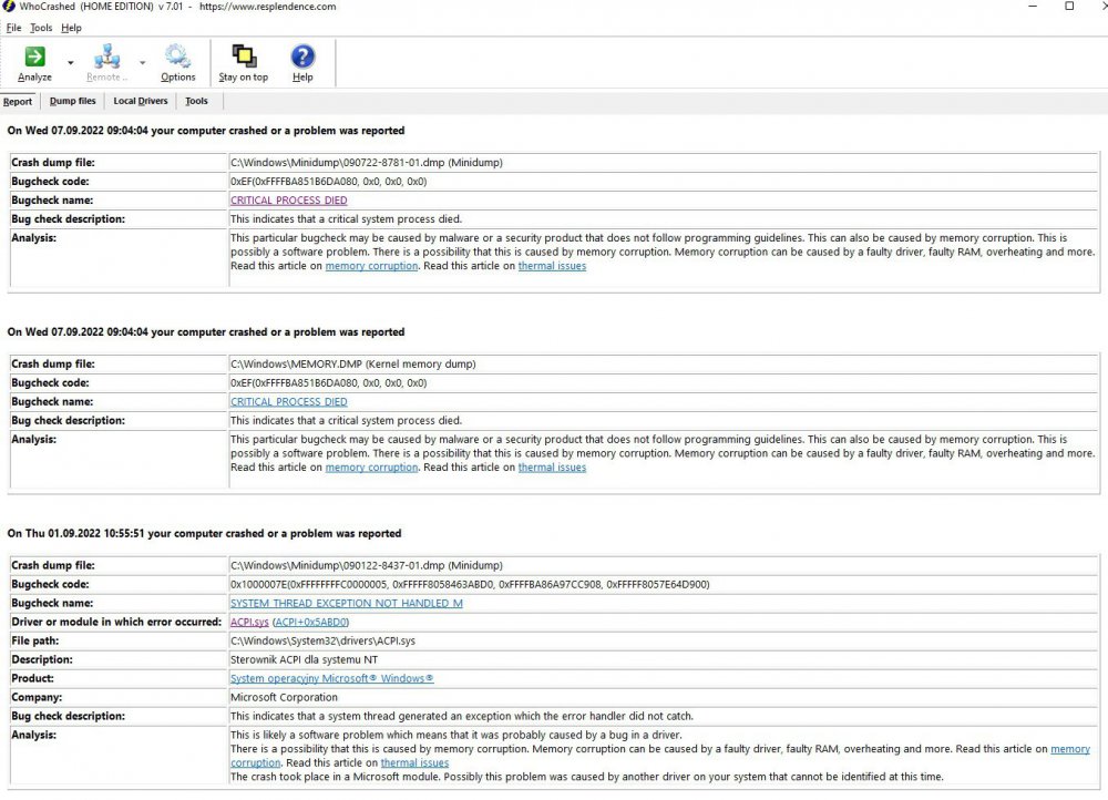 Witam Dzisiaj znowu przywitał mnie Blue Screen. Daję zrzut z WhoCrashed. Czy to po aktualizacji? Co to może być? Dzięki