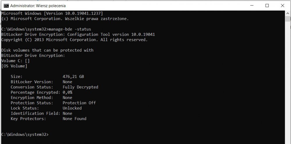 witam przy próbie instalacji linuxa dostaje komunikat ze hdd jest zablokowany bitlockerem (win 10) mimo iż ten powinien być wyłączony: > zrobiłem wstrzymanie via PowerShell zgodnie z https://learn.microsoft.com/pl-pl/troubleshoot/windows-client/windows-security/suspend-bitlocker-protection-non-microsoft-updates > panel sterowania wygląda jak na załączniku jednak instalator linuxa cały czas wyrzuca blokadę bitlockera/niemożność zrobienia partycji gdzie/jak jeszcze mogę to odblokować?