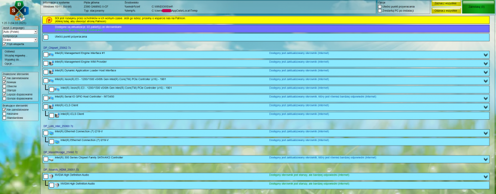 Już podsyłam zrzut ekranu z Snappy Driver Instaler. Wygląda to tak: Nic więcej nie znalazł. Kontaktowałem się również z supportem. Na razie nie otrzymałem żadnej odpowiedzi od nich. -