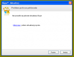Witam. Mam problem z instalacją i aktualizacją Skype. Próba aktualizacji automatycznej z wersji 5.3.0.120 kończy się komunikatem: i odesłaniem do pobierania instalatora. Instalacja ręczna zarówno przy użyciu instalatora webowego, jak i full skutkuje kolejnym błędem: Szczególnie dziwne to w drugim przypadku . Identyczna sytuacja występuje na drugim komputerze. W obu przypadkach system Windows XP SP3. Google jako przyczynę podpowiada złą datę systemową, co oczywiście u mnie nie występuje. Czy ktoś z Was spotkał się z podobnym problemem?