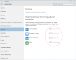 Cześć, Napotkałem ostatnio na dziwny problem związany z aplikacją People (?) w Windows 10. Po konfiguracji konta pocztowego + kalendarza (gmail) i restarcie aplikacji pojawia się komunikat "Nie można uzyskać dostępu do Twoich kontaktów..." (zrzut1) Przechodzę do ustawień prywatności i pojawia się okno jak na zrzut2 - nie ma możliwości przydzielenia dostępu do kontaktów. Dodatkowo przy próbie uruchomienia aplikacji People, pojawia się okno (czyste, nie pojawiają się elementy okna a jedynie ramka) na chwilę i znika. Dziwna sprawa - miałem do czynienia z kilkoma różnymi wersjami Windows 10 i nigdzie nie spotkałem się z takim problemem. Co ciekawsze, na jednym mam poblokowane opcje prywatności (Spybot beacon) i też nie napotkałem na problem... Czy ktoś ma jakiś pomysł co może być problemem?