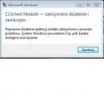 Wyskakuje też komunikat CLSches Module - zatrzymano działanie i zamknięto