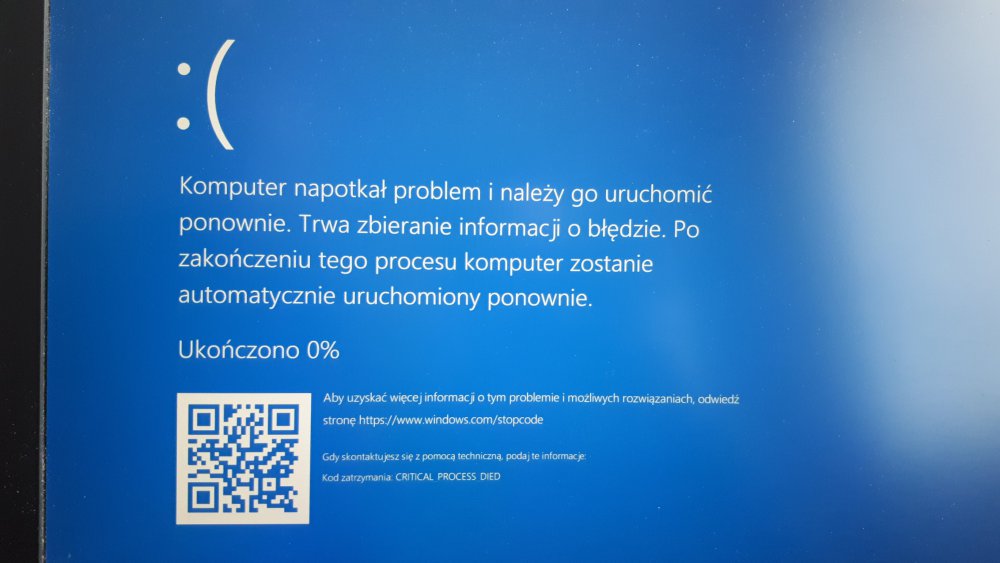 Po wybraniu Rozwiąż problemy - Opcje zaawansowane - Przywracanie systemu pojawia się komunikat: Próbowałam też użyć Resetuj ustawienia (z zachowaniu partycji), ale to też nie działa, mam komunikat: "Nie można zresetowań ustawień do stanu początkowego. Brak wymaganej partycji dysku". Spróbowałam, ale nie podziałało, po drugim lub trzecim restarcie mam komunikat "There is a system repair pending which requires reboot to complete." Restartowalam laptop kilka razy, ale komunikat dalej jest taki sam. Po restarcie sprawdziłam: - na poz. 1 jest Windows Boot Manager, - mój dysk SSD (ADATA) jest jako HDD0 i na pozycji 2. - na poz. 3 jest HDD1 wykrywane. Do pulpitu jestem się w stanie zalogować tylko po wpisaniu w konsolę: CHKDSK C: /F lub CHKDSK C: /F sfc /scannow Wtedy w menu Windows Recovery wybieram Zamknij, odłączam pendrive, włączam ponownie, wtedy po chwili loguję się do pulpitu (trwa to trochę dłużej niż zwykle, wcześniej był bardzo szybki rozruch). Od tego momentu mam około 1-2 min do pojawienia się BSOD. Próbowałam po zalogowaniu do pulpitu usunąć aktualizacje (Ustawienia - Windows Update - odinstaluj aktualizacje), ale jak klikam prawym klawiszem na którejś, nie rozwija się menu, ani nie mam przycisków Odinstaluj, jest tylko Organizuj. Po tym jak pojawia się BSOD (ktory jest zamrożony, nic się nie dzieje), muszę wyłączyć laptop przyciskiem power. Po ponownym włączeniu dzisiaj pojawia się przeważnie czarne tło z logo Acer (i też zamrożone), ale wcześniej pojawiało się też "No bootable device", nie potrafię tego wyczuć, od czego to zależy. "No bootable device". pojawia się gdy robię restart, sprawdzam BIOS przez F2 i wychodzę z BIOSu. Nie. Nigdy nie spotkał mnie tak trudny i uporczywy problem z żadnym laptopem, którego miałam Jeśli mogę jeszcze zapytać: 1) Czy w tej sytuacji próbować dalej? Czy czeka mnie serwis? 2) Czy jest to usterka mechaniczna, czy raczej coś z samym Windowsem/jego aktualizacjami? Czy jakiś wirus? 3) Czy Windows Creator Tool by w ogóle zadziałał? Jestem gotowa sformatować ten laptop, ale nie chcę bardziej namieszać i tracić czasu.