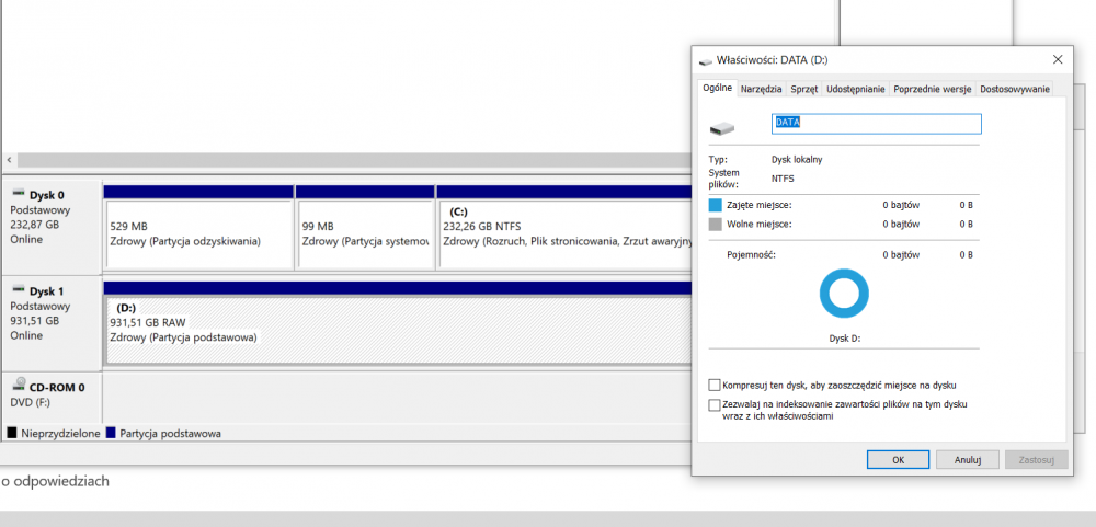 Witam, bardzo proszę o pomoc - mam 2 dyski: SSD (C : z Windowsem) i HDD. Chciałam zrobić kopie zapasową plików z HDD i go sformatować. Zrobiłam format dokładny, z ustawieniami domyślnymi NTFS itd. Jednak wyskoczył mi komunikat "System Windows nie mógł ukończyć formatowania". Przy próbie otworzenia dysku: "D:\ nie jest dostępny. Żądanie nie powiodło się z powodu krytycznego błędu sprzętowego urządzenia." Zauważyłam, że system plików zmienił się na RAW, ale nie wiem jak to zmienić na NTFS